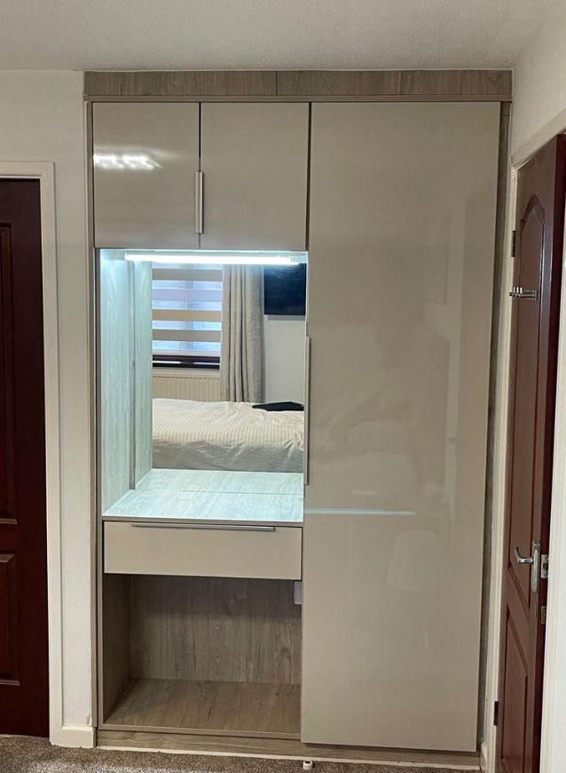 Transform your space with a custom dressing room, designed to bring elegance, organization, and functionality to your home. Tailored to your needs, our bespoke dressing rooms offer ample storage, smart layouts, and premium finishes, ensuring a seamless blend of style and practicality. Request a free brochure to explore elegant and custom dressing room.